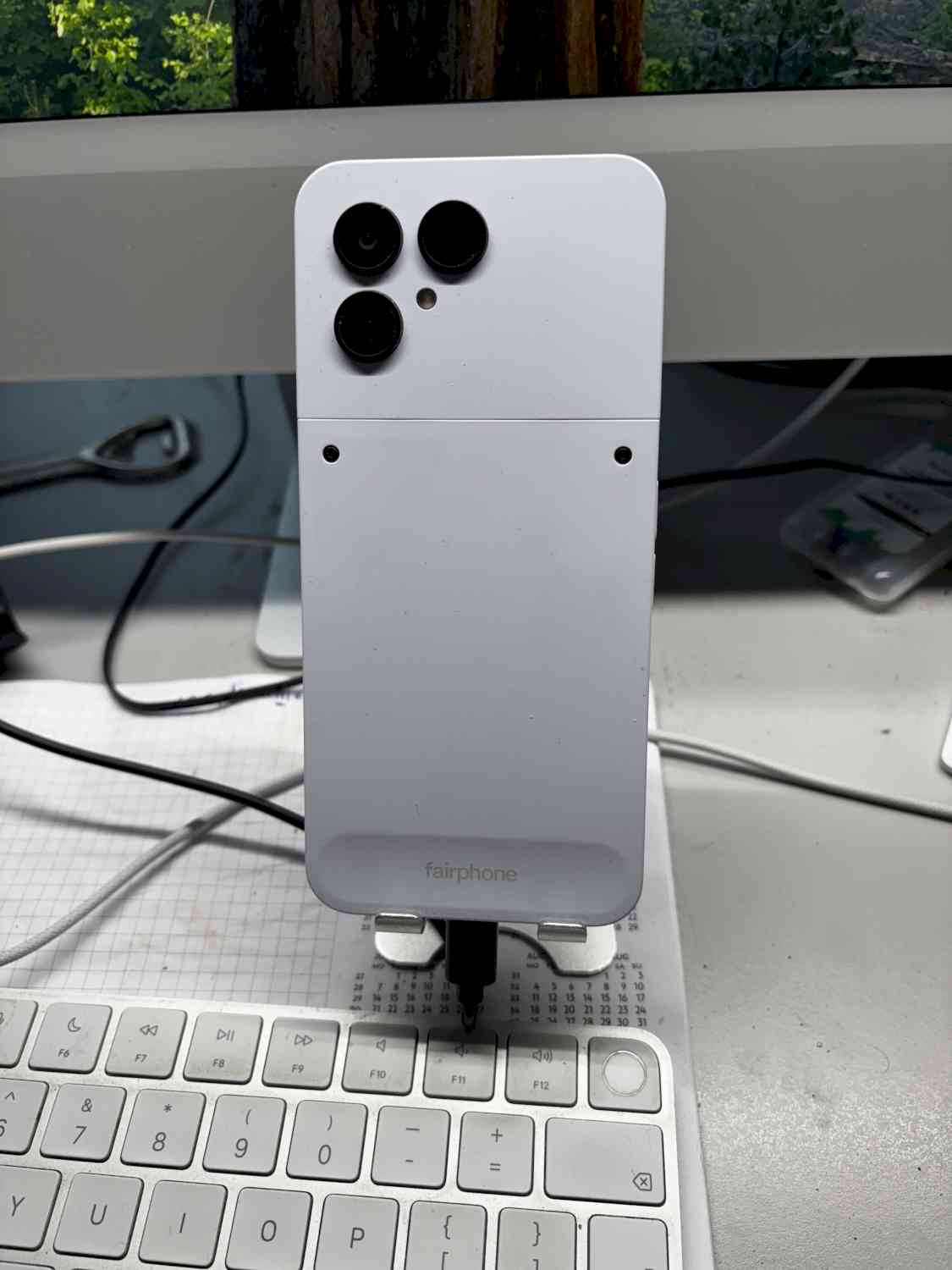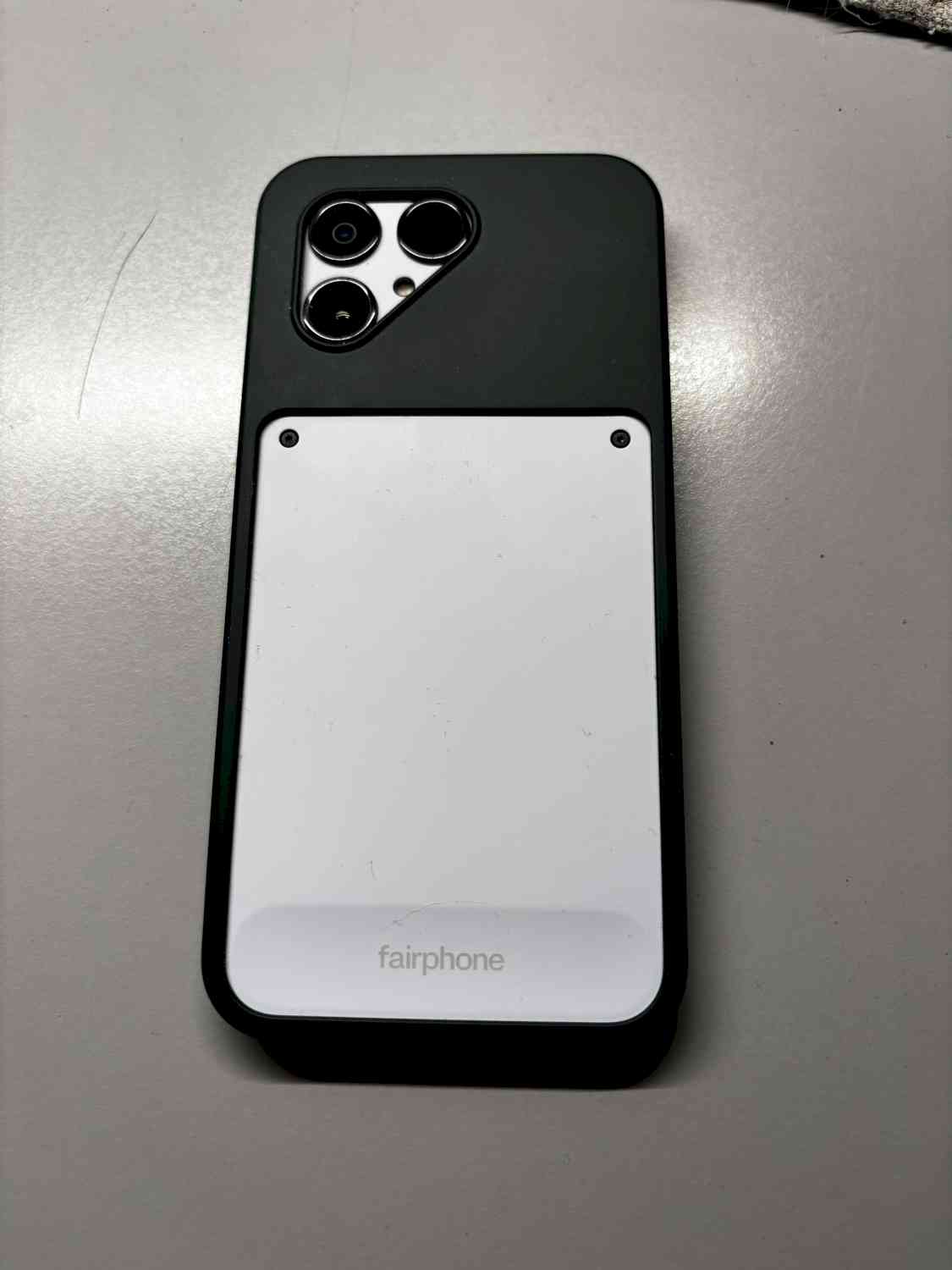 Fairphone 6e generatie, uitgekomen zomer 2025. 2 maanden gebruikt, maar ik kan niet wennen aan Android, dus ik ben weer terug gestapt naar m'n oude telefoon. Kleur: wit, met een groene case.