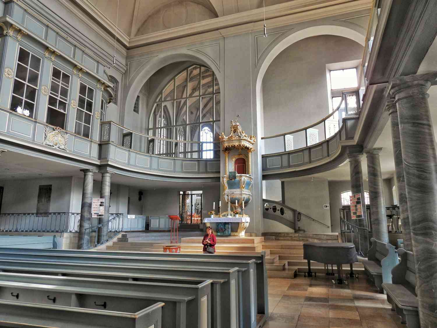 De sfeer in de kerk is sober door de uniforme kleur, maar smaakvol door de pilaren en gewelfde trappen. Het orgel werd gebouwd in Wiegleb stijl in 1736-1739, herbouwd in romantische stijl in 1884 en opnieuw herbouwd 1961 in neo-Barok. Het is het grootste orgel van Franken (noord-Beieren). In 2004 werd het door een Nederlandse orgelbouwer hersteld in originele stijl.