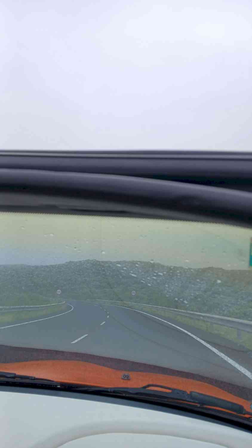 Una experiencia extraña. Salir de casa, seco y con el techo bajado, solo para salir del túnel al otro lado de la montaña y quedar atrapado en la niebla. Siempre con el techo bajado... 🤭