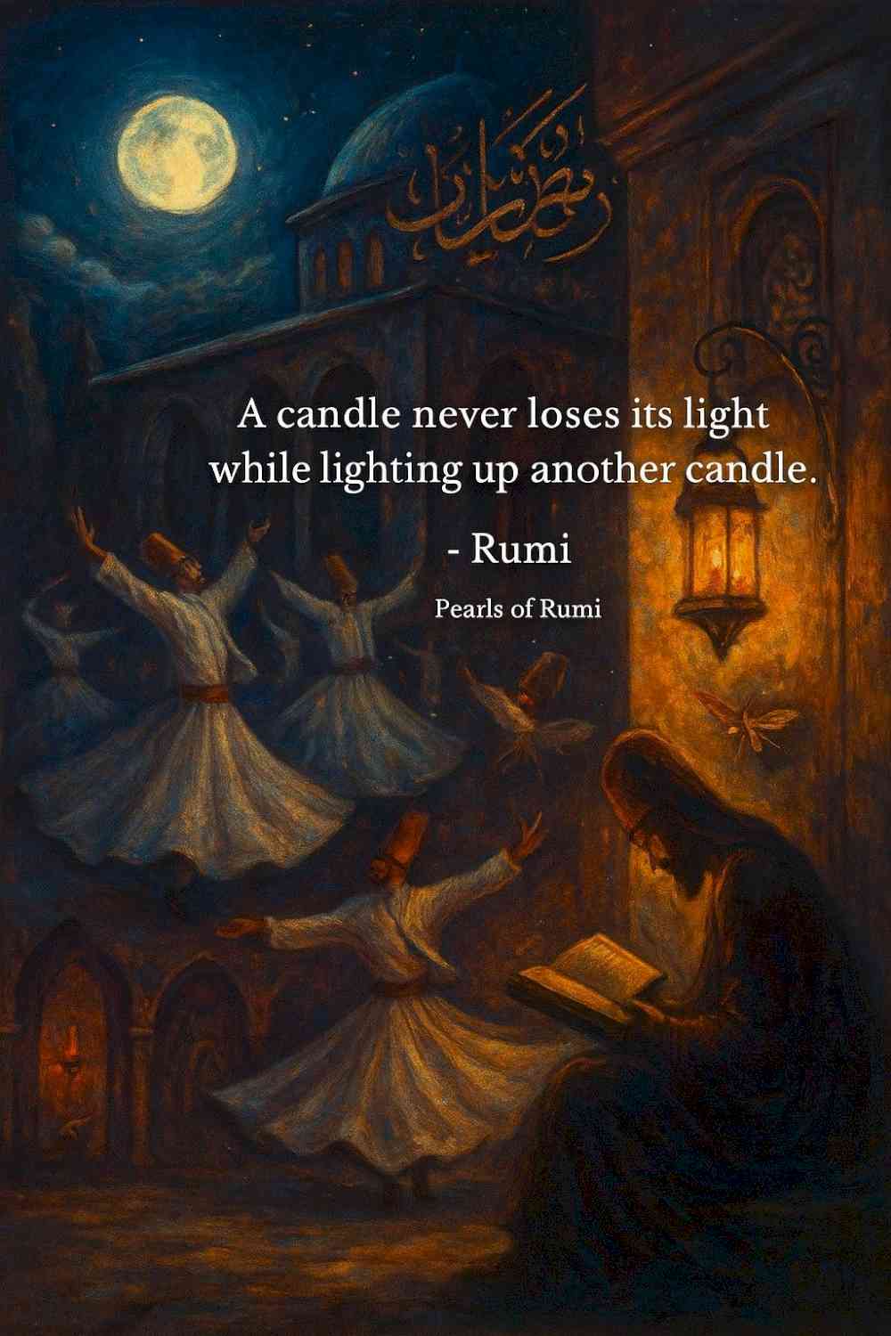 Sterrenlicht @ElisahInWonderland Een prachtige quote van rumi. En het klopt helemaal. Het betekend wanneer je andere helpt, je daar zelf niets door verliest. ( je licht dooft niet door iemand anders ‘ licht of inspiratie aan te wakkeren. - bijvoorbeeld door vriendelijkheid , hulp of kennis te delen.