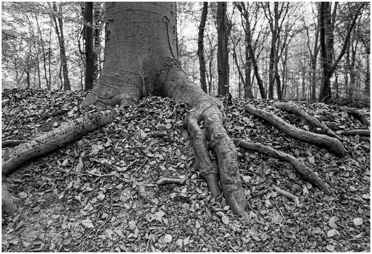 dansant Schitterende zwart-wit foto, die heel mooi de speelse licht-schaduw van de bomen weergeeft in combinatie met de speelse vlakken van de kiosk.