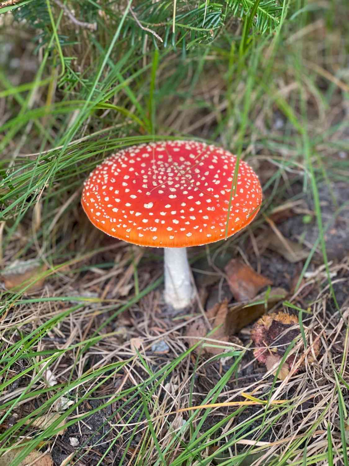 Kenmerken: De vliegenzwam is herkenbaar aan zijn opvallende rode hoed met witte stippen.