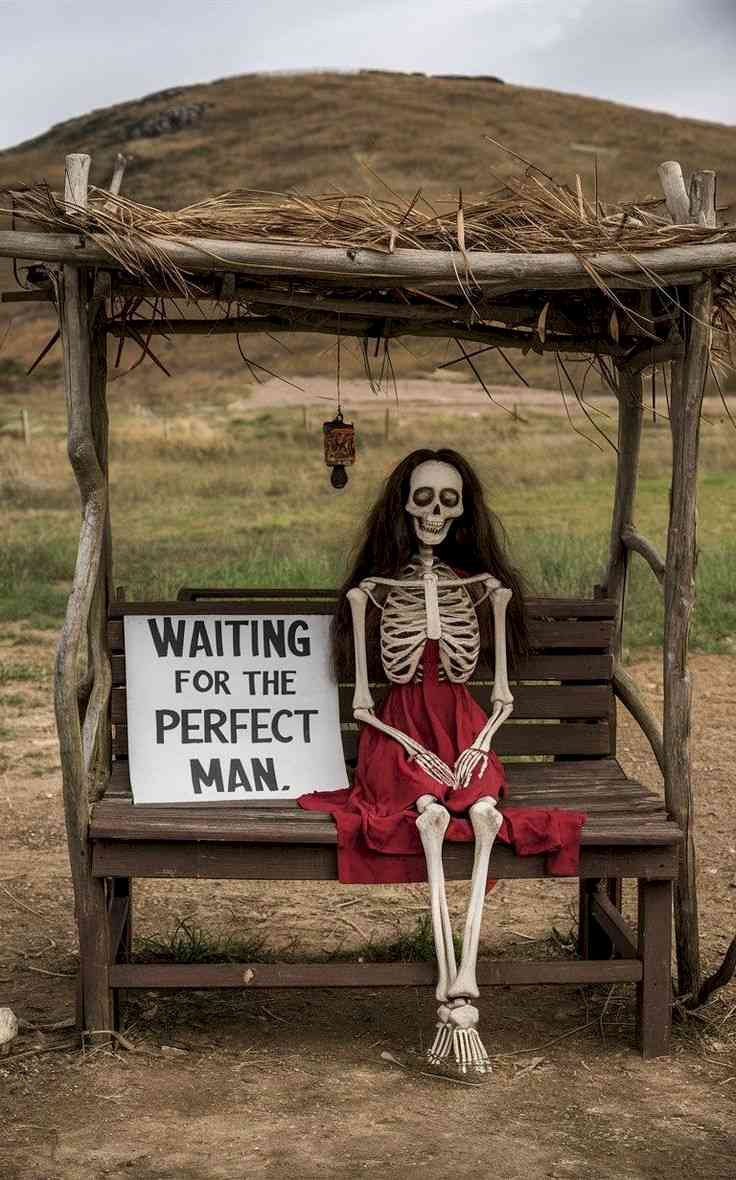Waarschijnlijk staat er een eind verderop een bankje met het skelet van een man die op zoek is