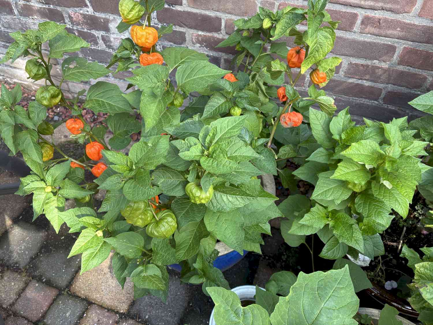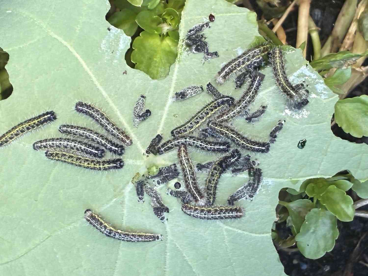 Er zitten veel rupsen op de oostindische kers. Ze vreten maar raak.