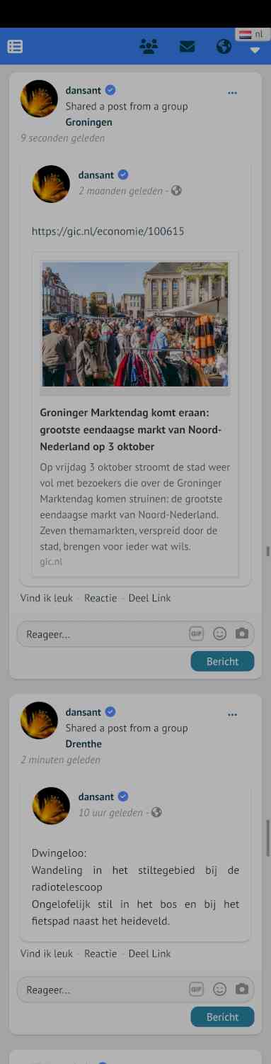 Als ik een bericht uit de groep "Groningen" deel zie ik wel de foto, maar uit de groep Drenthe zie ik geen foto's. Zie screenshot hieronder.