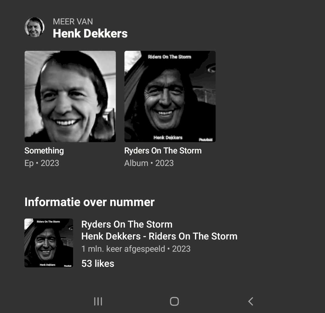 Henk Dekkers - Riders On The Storm 1 miljoen keer afgespeeld op YouTube Music