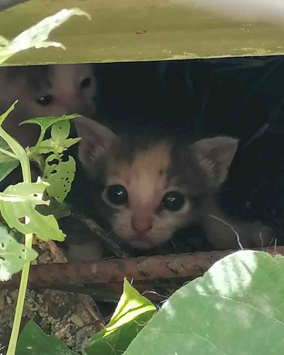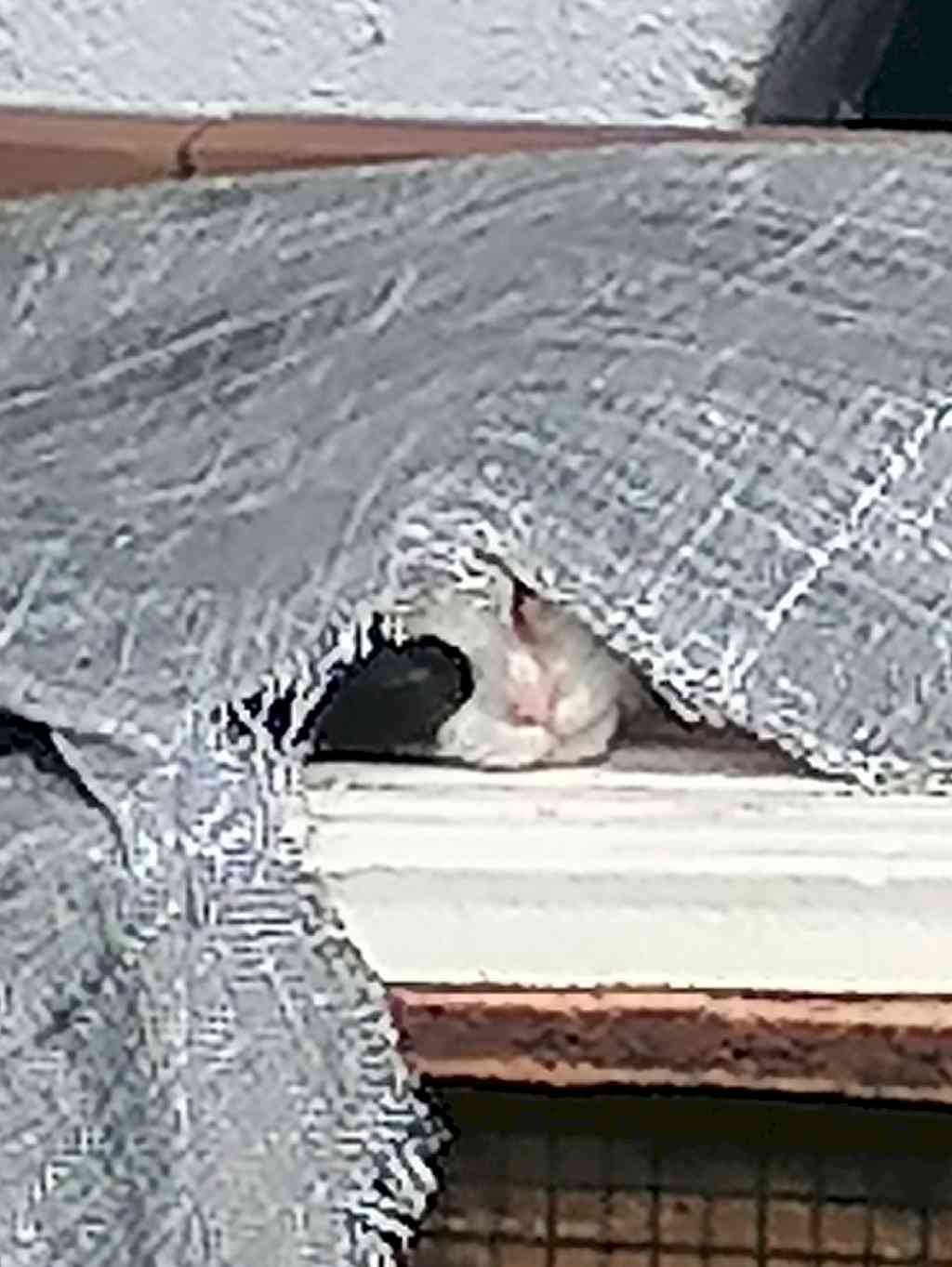 It's a pity that the quality of the picture isn't better! A cat looking for shelter under an old tarpaulin...