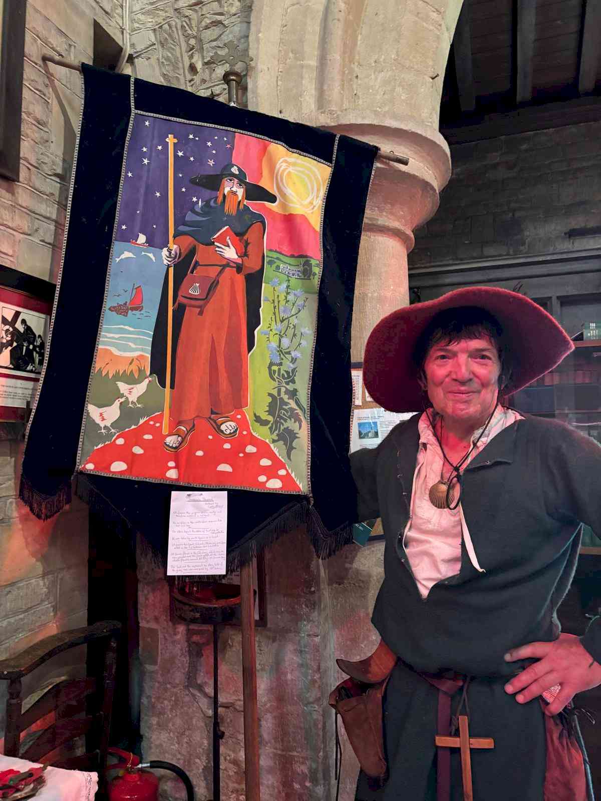 in 1983 I decided that one medieval pilgrimage wasnt enough. I was going to walk from Salisbury to Wells via Glastonbury. Dave, who failed to complete the previous year decided to join me and Joe, another member of our medieval society, The Knights of the Rose came too. From Salisbury we walked out out to a ridge that took us to Shaftesbury and visited the ruined abbey. We left via the famous Golden Hill used by the Hovis Bread adverts at the time. We visited Templecombe, once owned by the Knights Templar and then headed north to Castle Cary, thought by some to be the site of King Arthur's Camelot. The next major town was Glastonbury, where monks claimed that King Arthur had been buried. We went up the Tor, got thrown out of the George and Pilgrims pub before we even got in properly and slept on the Tor. We finished at Wells and celebrated with a good meal at the cathedral itself.