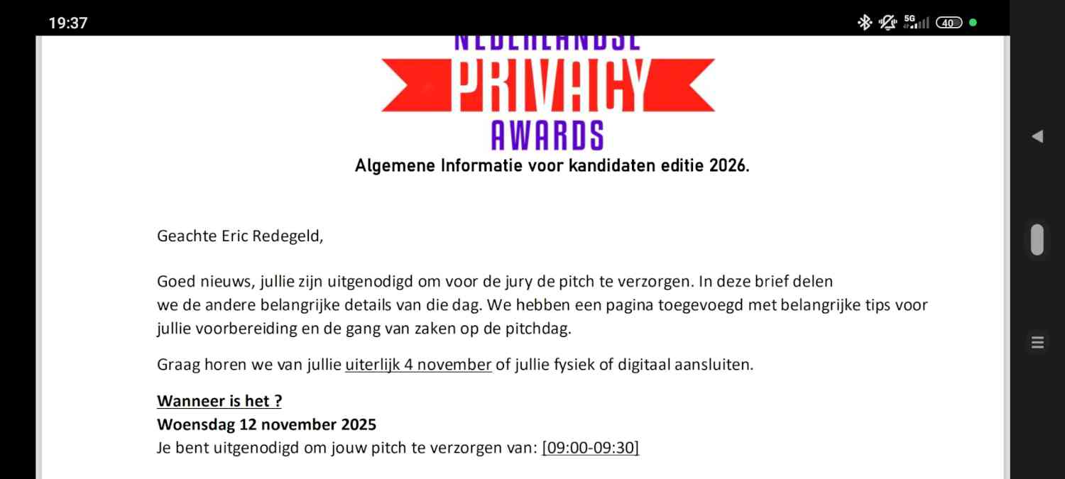 De Google agenda was echt voor de mensen van de organisatie (wie werkt wanneer) en eerlijk het mailadres was 2 keer de naam van de organisatie met een punt tussen. Het wachtwoord. Gewoon de naam van de organisatie. Dus echt superveilig 🤔.