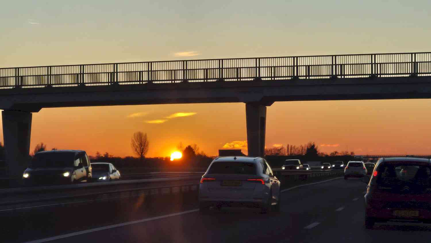 Zonsondergang boven de A29.