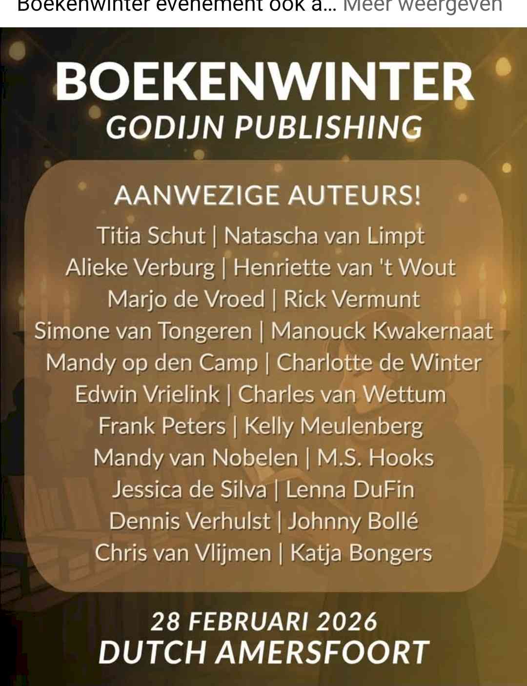 Op 28 februari 2026 ben ik met al mijn boeken bij het evenement Boekenwinter in Amersfoort. Kom bij me langs, maak een praatje, discussieer over aliens of zwarte gaten of het schrijven van SF... Desnoods kun je een boek kopen ;)