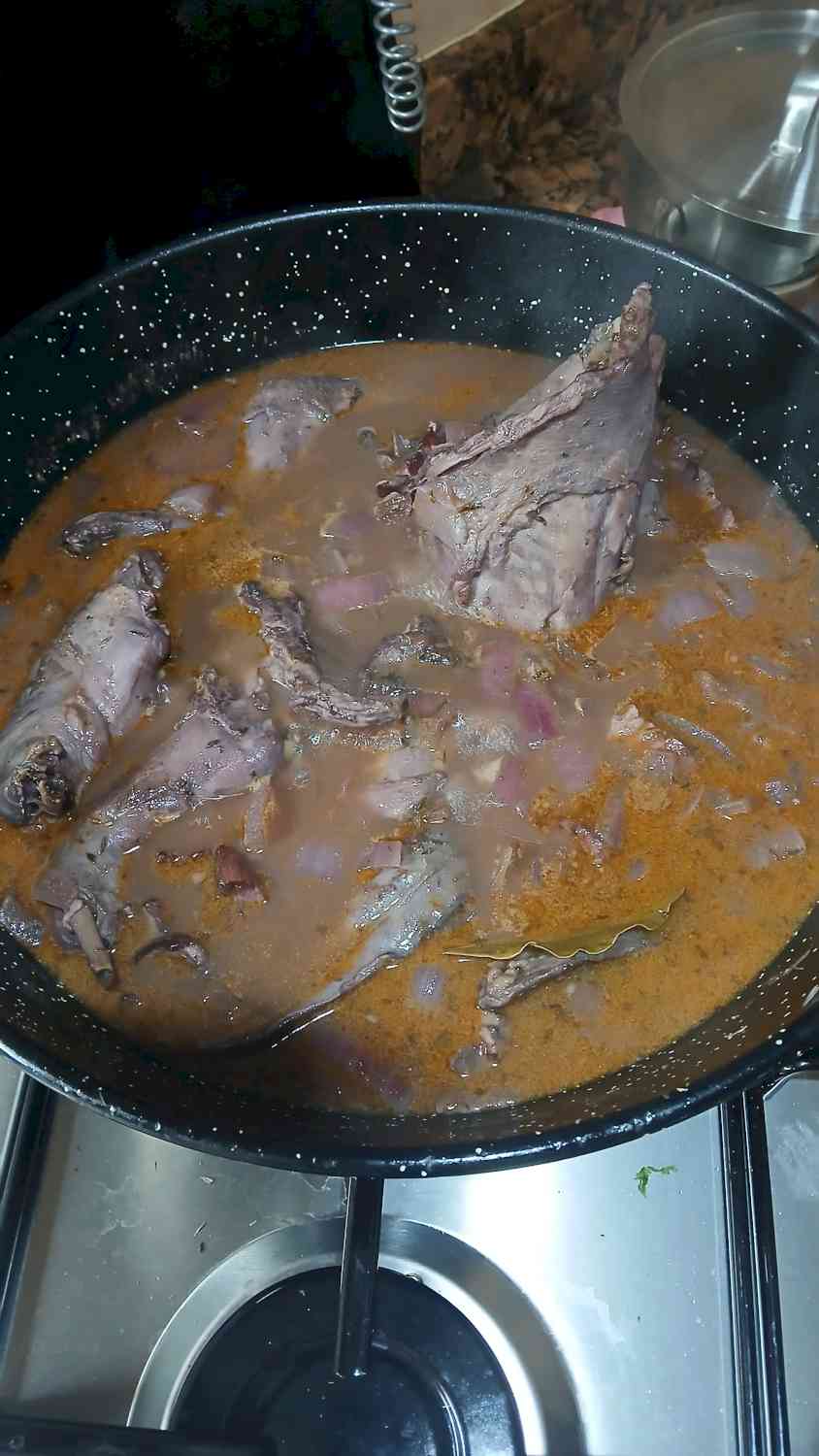 We will have 'lapin au vin" - rabbit in wine, like the "cock au vin" .