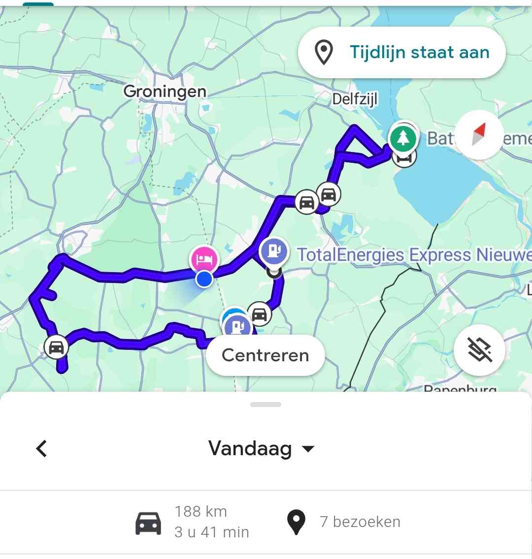Onze route van vandaag 25-26 Drenthe