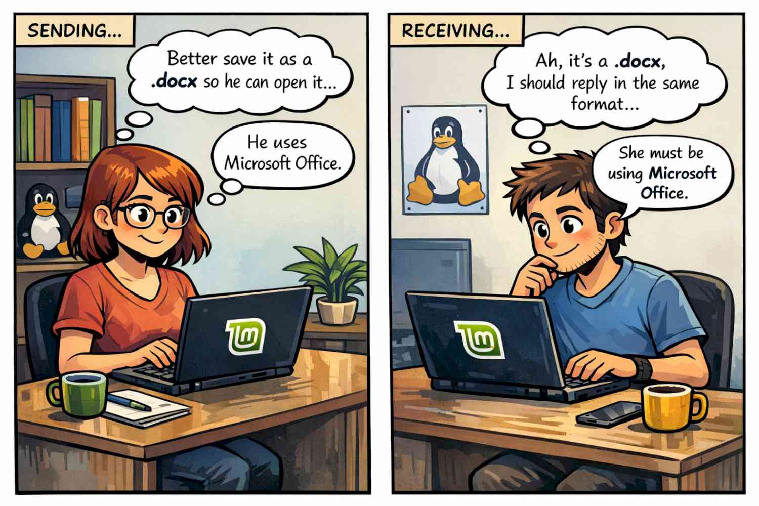 Voor wie zijn hele digitale bestaan zich afspeelt binnen het ecosysteem van Microsoft Windows is dit waarschijnlijk hogere wiskunde. Maar voor Linuxgebruikers is het een subtiele triomf. LibreOffice opent .odf, .docx, .doc, en desnoods iets wat in 1997 op een floppy is opgeslagen.