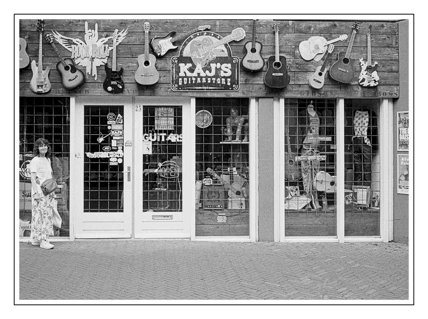 dansant Schitterende zwart-wit foto, die heel mooi de speelse licht-schaduw van de bomen weergeeft in combinatie met de speelse vlakken van de kiosk.