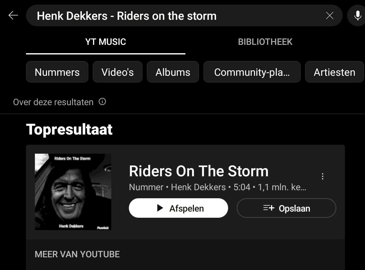 Henk Dekkers - Riders On The Storm 1.1 miljoen keer afgespeeld op YouTube Music